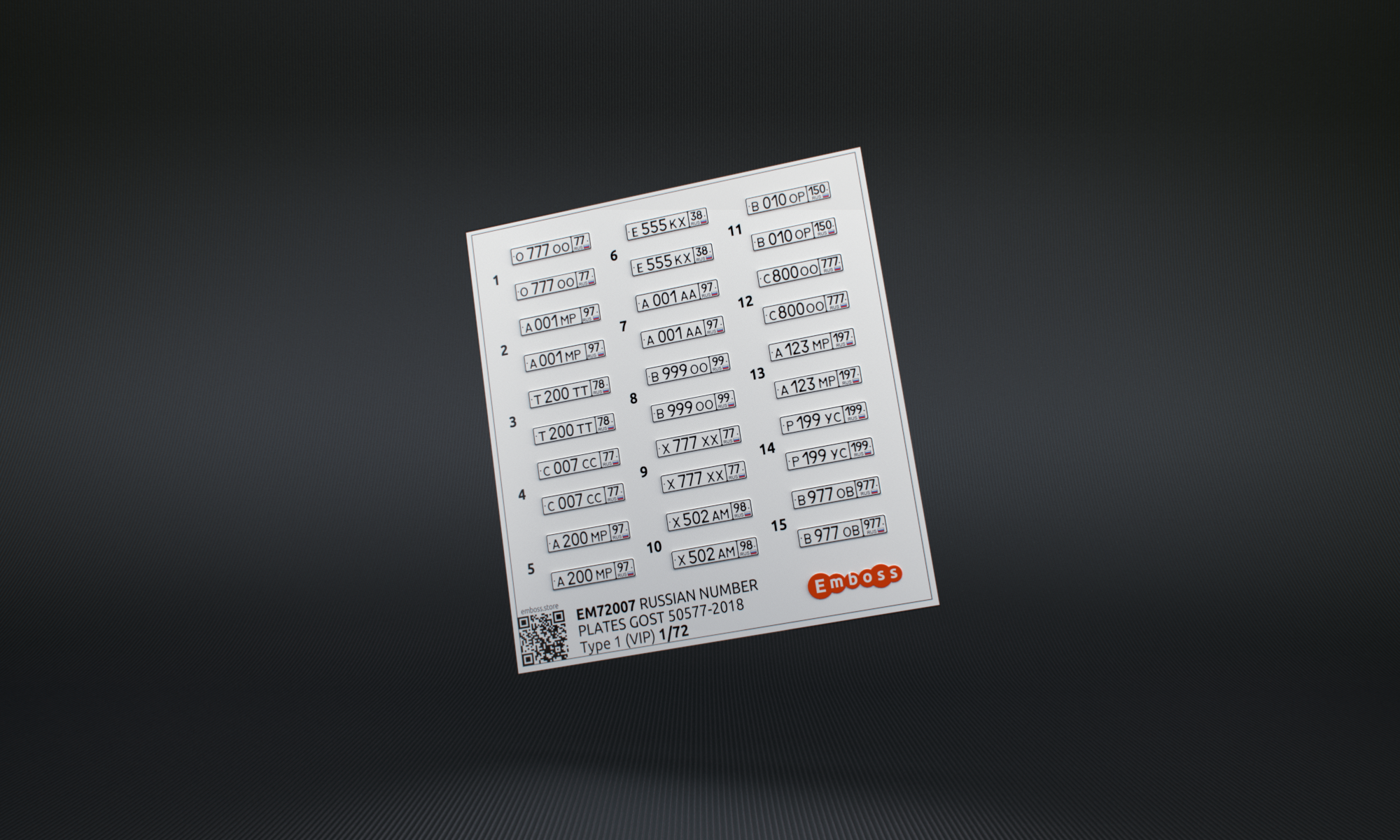EM72007 "Красивые" автономера РФ 1:72 (3D декаль) Emboss в Саратове, купить в интернет-магазине, цены, фото