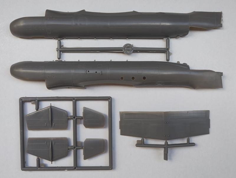 В модели палубного самолета ДРЛО в масштабе 1/72 Grumman E-2 Hawkeye "Super Fudd" использованы те же пластиковые детали, что в наборе Heller 80349. Деколь содержит четыре варианта маркировки: