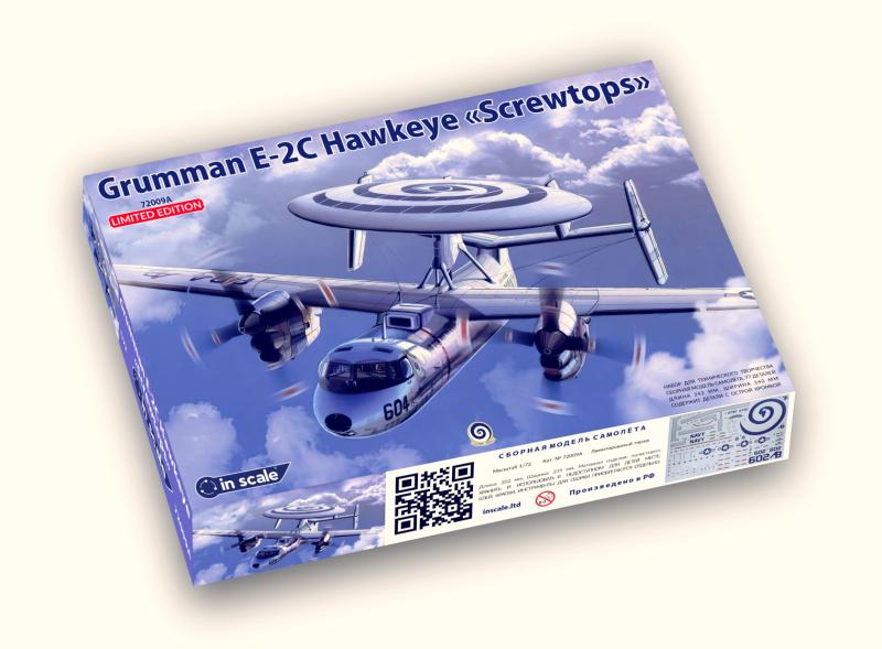 В модели Inscale палубного самолета ДРЛО в масштабе 1/72 Grumman E-2C Hawkeye "Screwtops" использованы те же пластиковые детали, что в наборе Heller 80349. Деколь содержит один вариант маркировки: